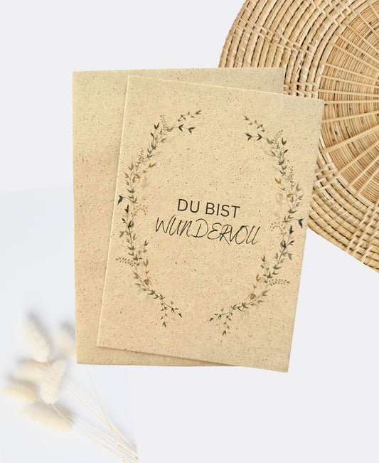 Postkarte „Du bist wundervoll“ aus Graspapier (A6) | Nachhaltige Karte Minimalistisch