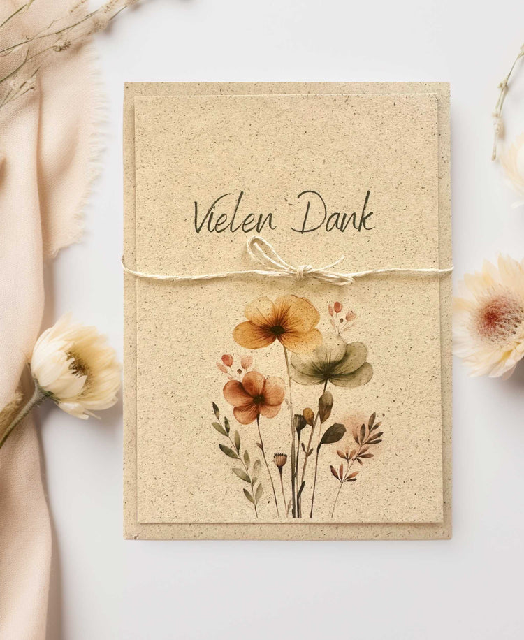 Nachhaltige Karte aus Graspapier (A6) - Dankeskarte