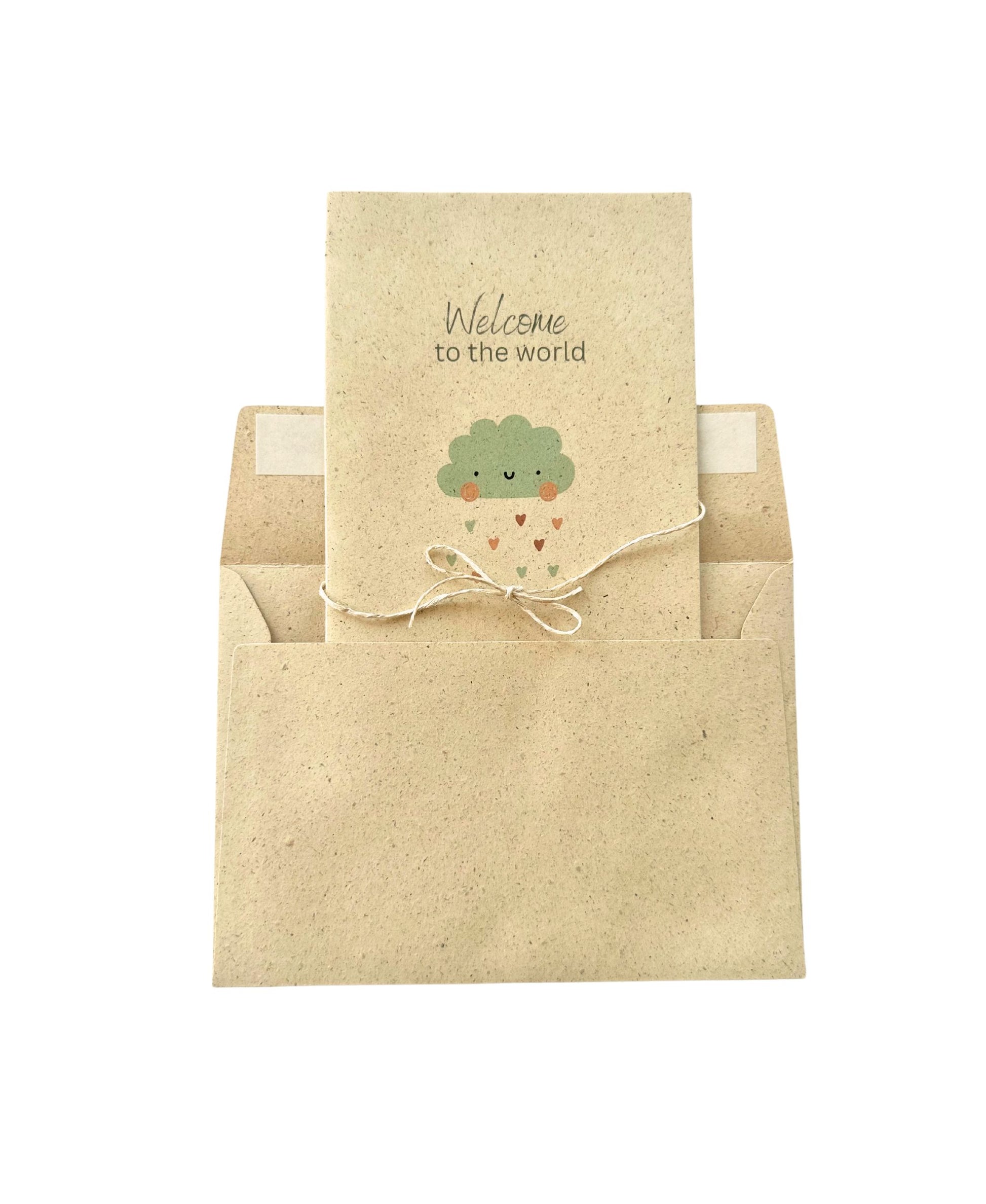 Jeder Anfang ist etwas ganz Besonderes – und mit der nachhaltigen Graspapier-Geburtskarte „Welcome to the World“ kannst du diesen Zauber auf liebevolle Weise einfangen. Ideal als umweltbewusste Glückwunschkarte zur Geburt eines neuen Erdenbürgers.