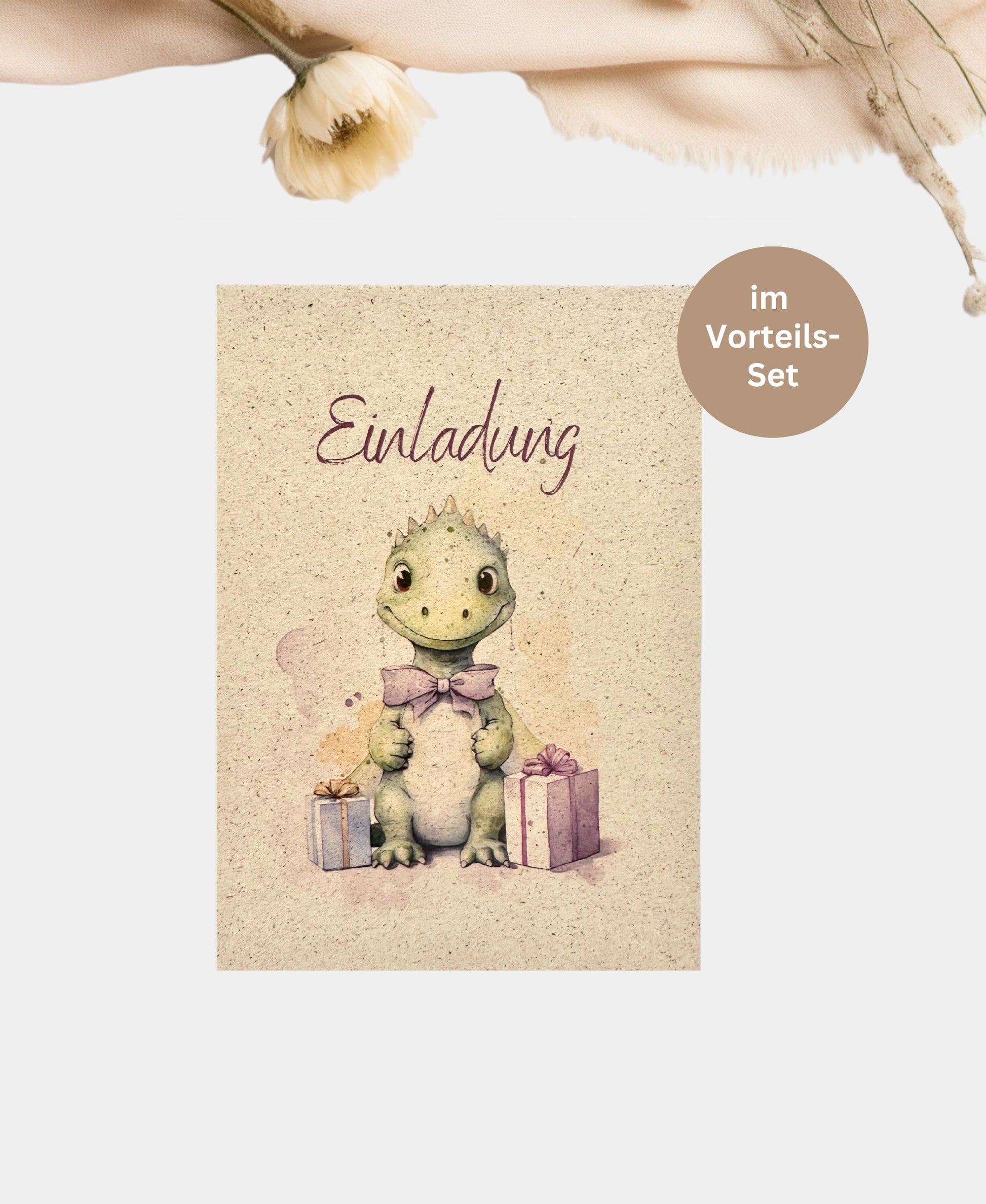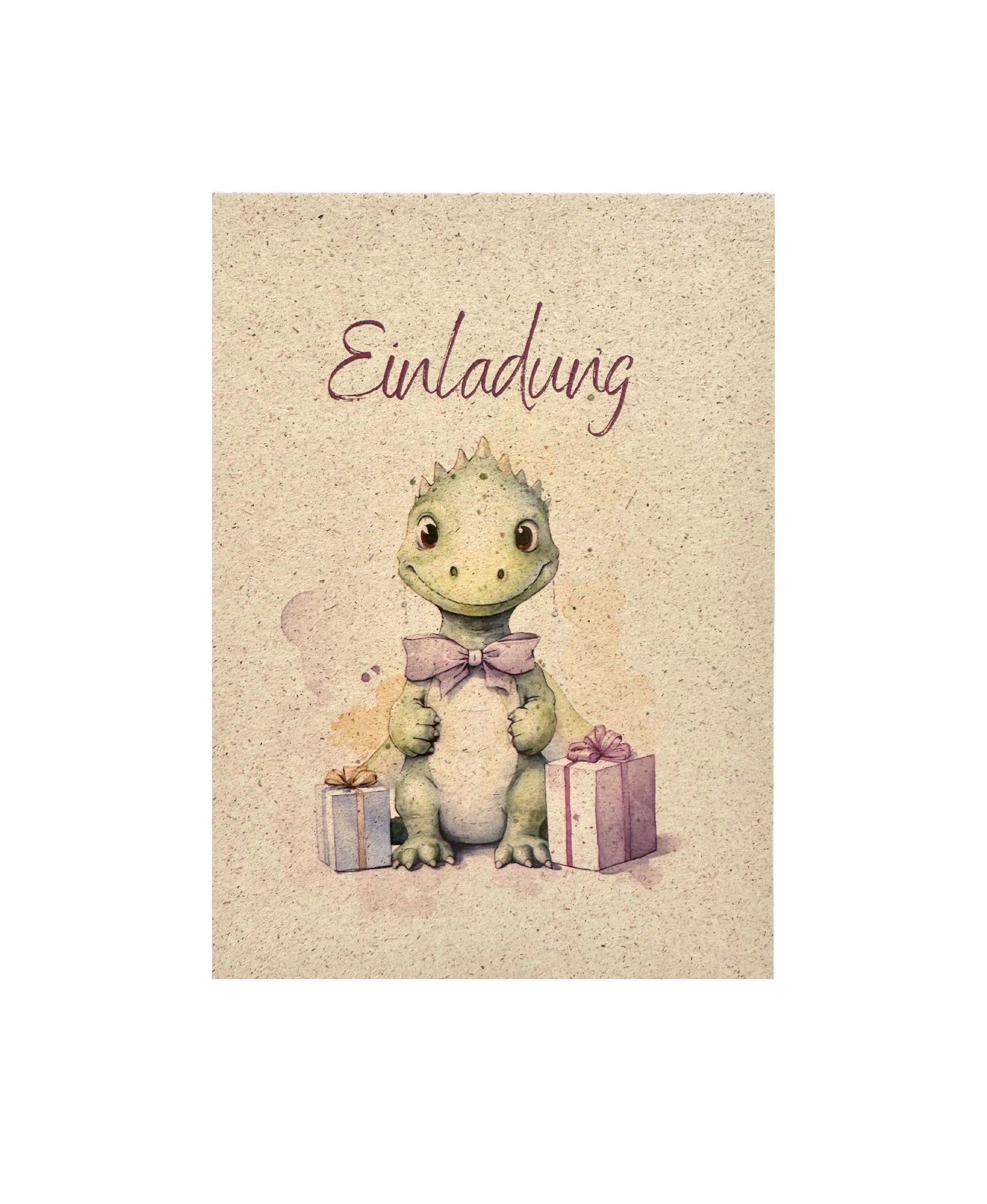 Graspapier Einladungsset - Kindergeburtstag DINO (A6)